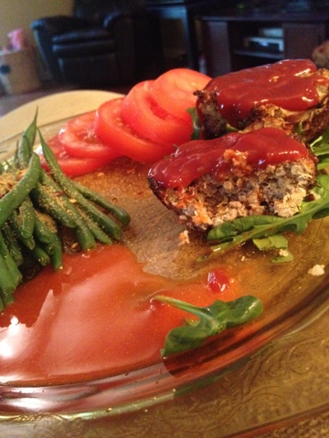 Preheat your oven to 425. Coat a muffin pan with non stick spray. Mix all ingredients together in a bowl. Fill the tins almost full. Then bake until they're finished! I prefer my meat to be super well done, I'd say I baked mine about 40 minutes.